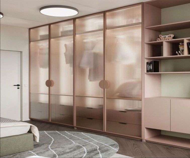 Modern Fluted Glass Floor-to-Ceiling Wardrobe With 4-Door Shutter