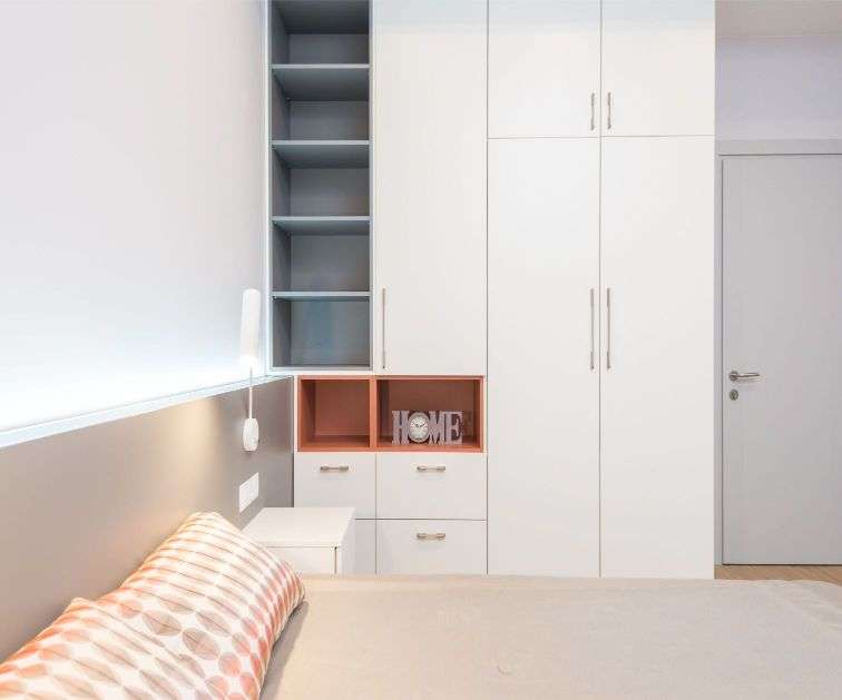 Built-in Wardrobe: This type of wardrobe is custom-designed to fit the specific dimensions of the bedroom. Built-in wardrobes offer the advantage of maximizing storage space and can be customized with various storage features, such as shelves, drawers, hanging rods, and shoe racks.