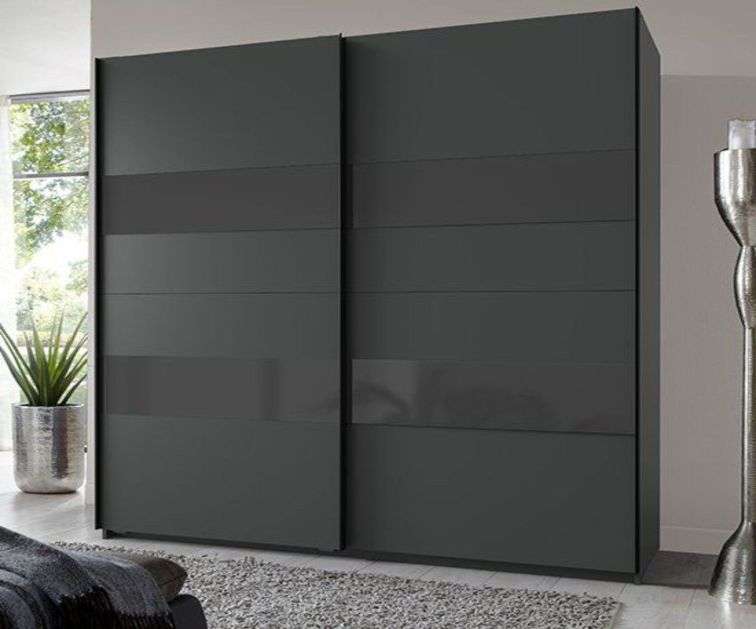 Metal Gray Sliding Door Wardrobe With 2-Door Shutters